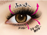 GAL層のまつげメイクのトレンドは、ばさーっと毛束感のあるドーリーまつげから、ふぁっさ〜としたフェアリーまつげに変化しています。極細の毛が密集してふさふさ軽い印象のまつげが理想であり、マツエク(まつ毛エクステンション)のような自然な仕上がりが求められています。
