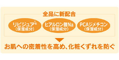 リキッドファンデーション5色すべてに保湿成分の「リピジュア〔R〕※」「ヒアルロン酸Na」を新配合。
