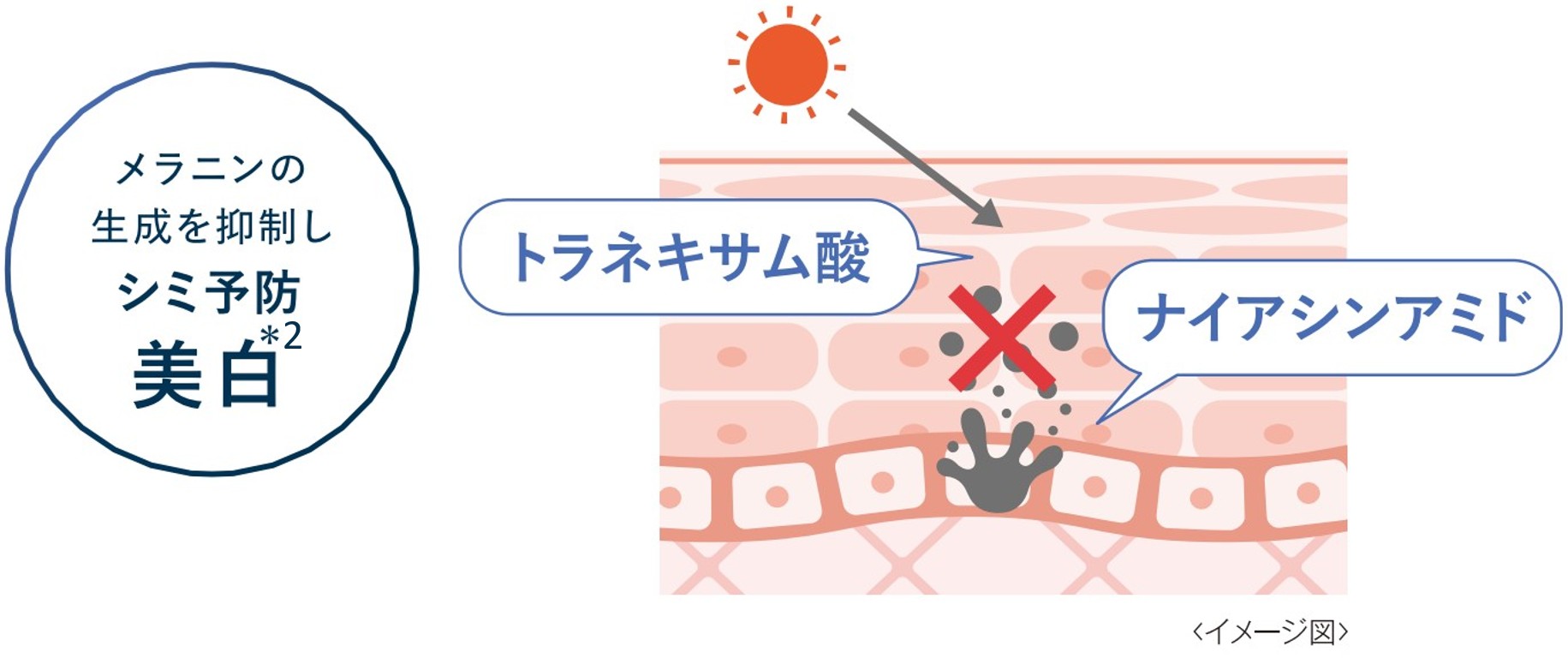 *1 2022 年 2 月〜2025 年 9 月末までの累計販売個数 *1 メラニンの生成を抑え、シミ・そばかすを防ぐ